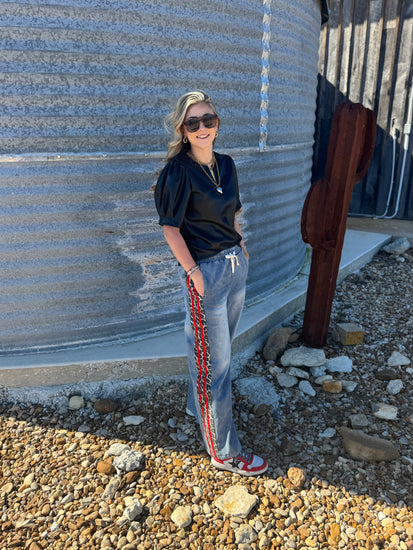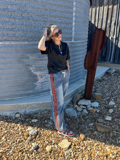 Cheetah Detail Denim Pants