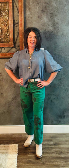 Increase quantity for Forest Green Floral Wide Leg Crop Pants